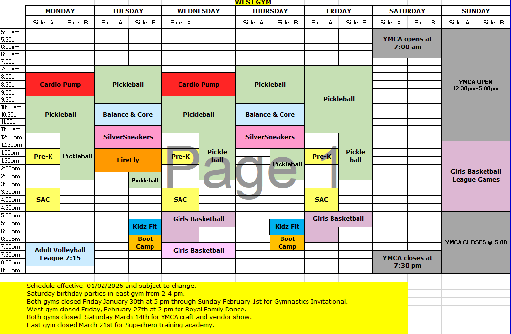 NOTE: See highlighted area for closures and events.